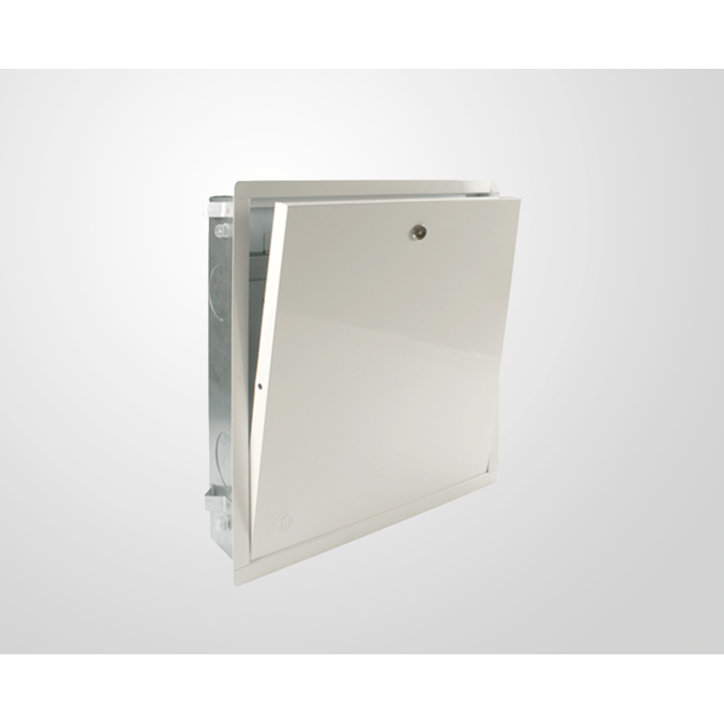 Armario metalico para empotrar de profundidad y altura regulable, en acero electrocincado. Puerta y marco en acero pintado, soporte de suelo regulable en altura, red metalica para enlucido, cierre por llave